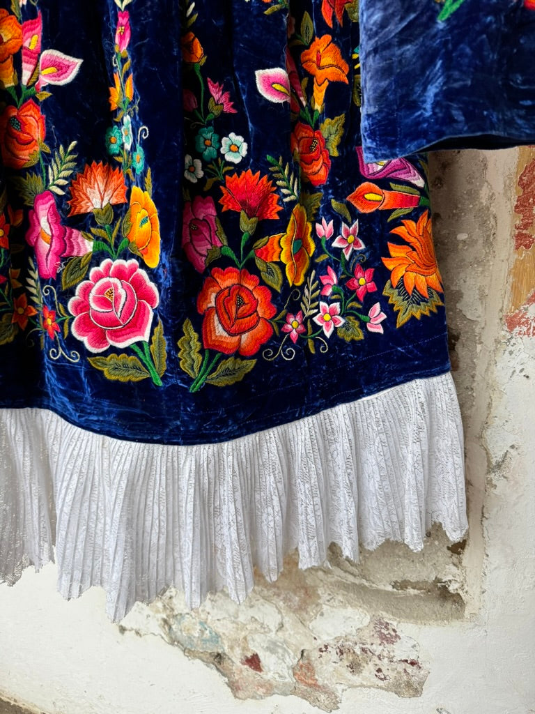 Una joya!!! Traje antiguo bordado a mano sobre terciopelo azul